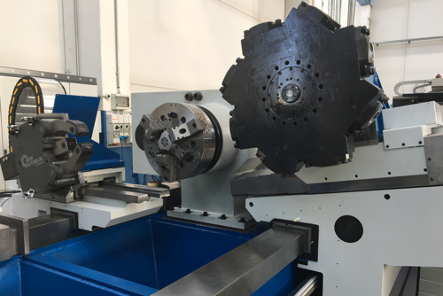The horizontal lathe SRE 500 is a powerful heavy-duty horizontal turning lathe for machining railway axles. The application of this machine can be customized for roughing and finishing operations.