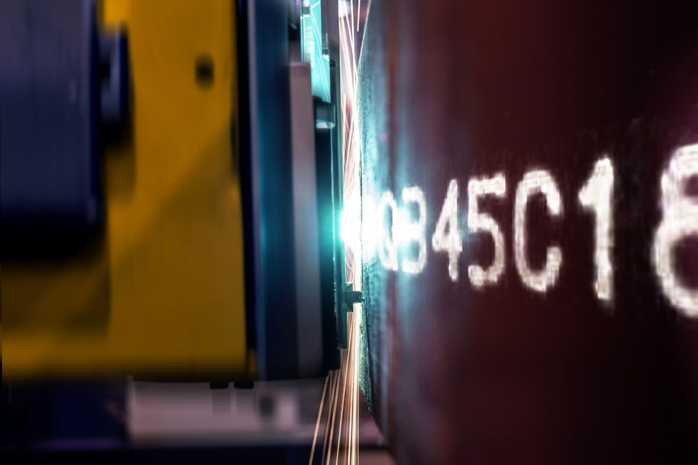 金属粉末打号机的特点是打号字符持久、清晰、明亮,字符尺寸和每行字符数都可满足客户的特定要求。全套设备采用标准模块生产,确保设备的高可靠性和低维护性,而且特别选用、设计的机电部件都经过测试,功能符合重工业要求。