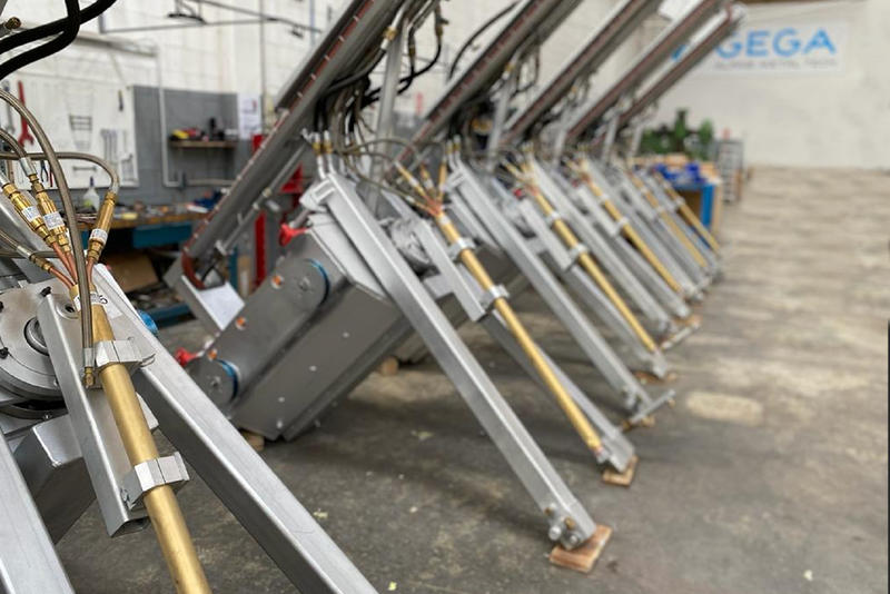 The machines are designed to handle 120 mm square materials up to a casting speed of 3,2 m/min (160 mm square @ 2,0 m/min), and are equipped with individual measuring rollers to monitor casting speed and determine cutting length. The gas control panel for six strands is equipped with individual AMT-GEGA regulators for gas and oxygen enables individual media adjustment. The machines are furnished with the patented GEGA-cutting nozzle type SHEL K 32F, which is designed to optimize material cutting and to reduce media consumption.