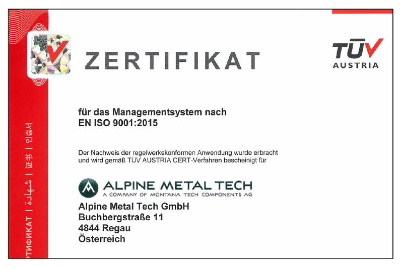 For Alpine Metal Tech, the audit result is confirmation of the quality management practiced at the Regau location.