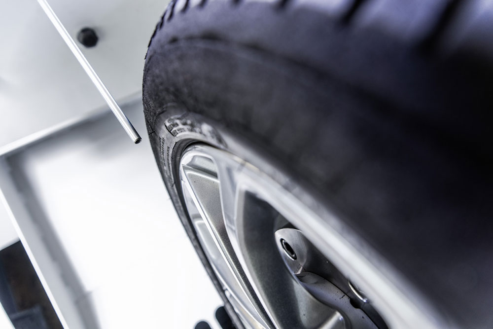 The real radial, tangential and lateral forces occurring are simulated by adjusting the skew and camber during rolling. The test loads are applied on the wheel through an air-filled tire that rests on the load roller. The load spectrums are specified by the automotive industry and test institutes. One or two individually loadable stations are installed on the load roller. The load roller is arranged upright.