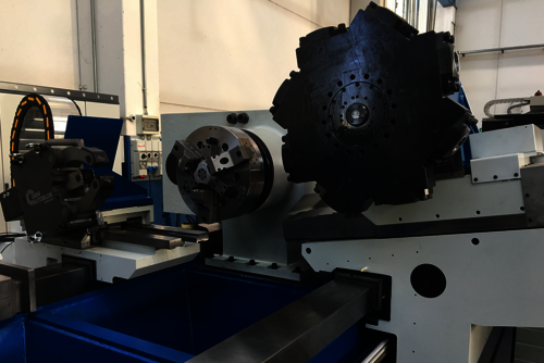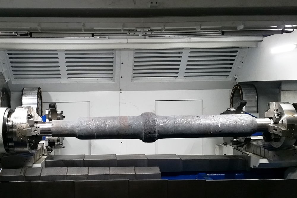 The horizontal lathe SRE 500 is a powerful heavy-duty horizontal turning lathe for machining railway axles. The application of this machine can be customized for roughing and finishing operations.