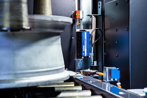 With the MARK410 laser marking machine, raw cast wheels are marked fully automatically with a serial number shortly after the casting process. In addition to plain text, the technology used also enables Data Matrix Codes for automatic process tracking and control of all subsequent production steps in wheel manufacturing. The wheel support with the lightening pockets has become the preferred marking position, as these surfaces are available immediately after the casting process and are not subsequently processed or painted.