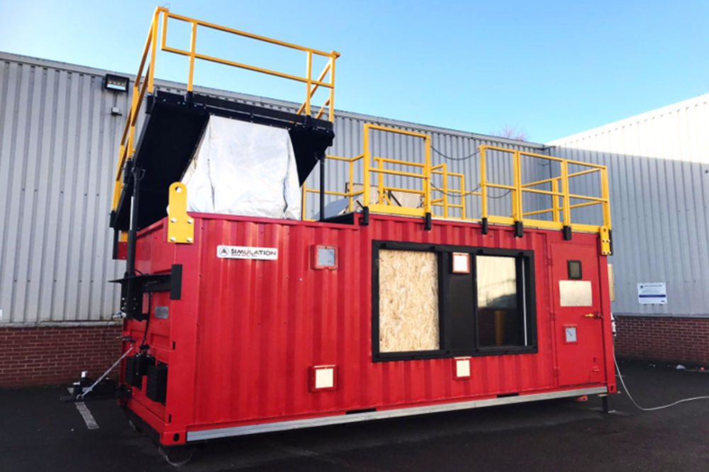 Simulation designs and builds customized 20ft and 40ft ISO container mobile fire and rescue training units. The units are designed to realistically simulate a variety of internal layouts such as domestic, industrial and maritime. Units can be designed with a hook lift attachment to facilitate ease of movement. External configuration consists of such items as breaching doors, extrication panels ( doors and windows), high pressure cutting points, hazardous substance leak exercise pipework, removable handrailing, roof escape ladder, roof access hatch and covers, rappel point, ladder lean point, collapsible pitched roof. Internal configurations include internal propane vapour fires, PA, sound and camera systems. Moveable walls, smoke scenarios, stairs, internal doors, fog nail panels, door heating elements, hose flaps, viewing window, sprinkler leakage prop, temperature monitoring gas detection and internal lighting.