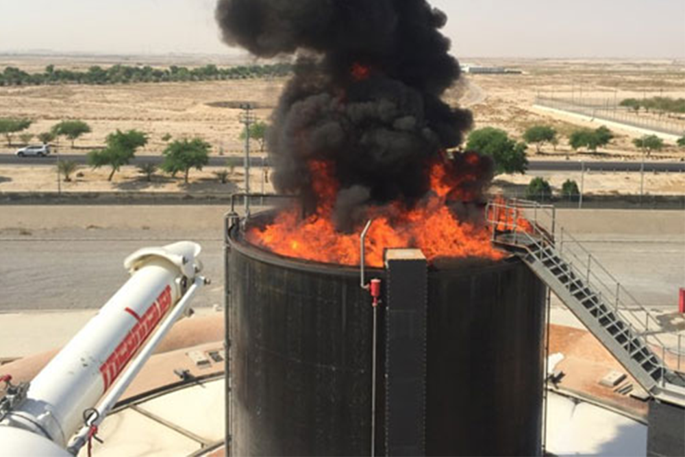 Simulation manufactures oil and fuel storage tank fire training simulators that offer the most intensive and realistic tank fire scenarios available. From full scale mock ups through smaller scale units, the computer-controlled fire loads will test the students and trainees. Advanced foam application techniques and fire-fighting tactics will be challenged in an extremely realistic environment.