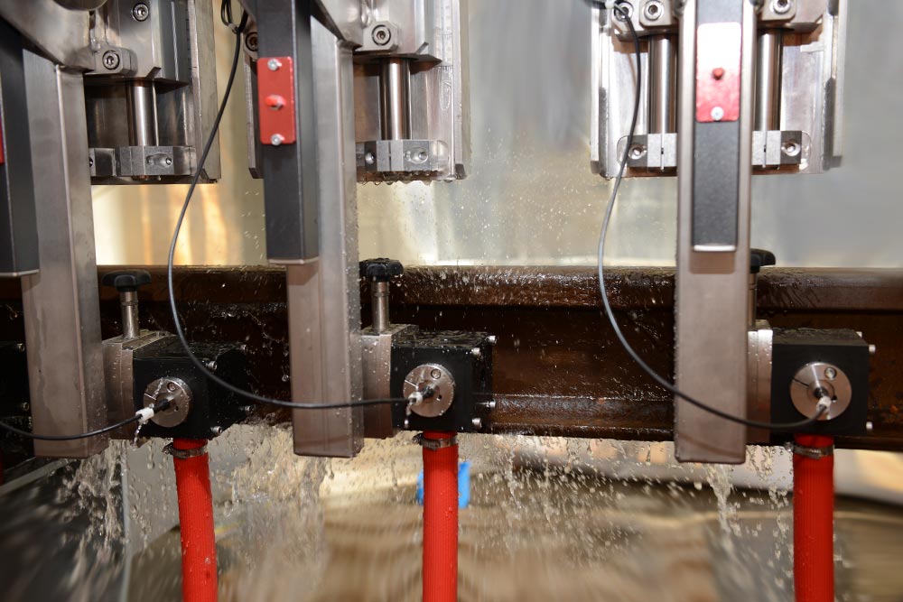 The system is available as water-jet coupling or water-gap coupling solution. The machine provides a fully equipped evaluation system operating in multiplex mode for sections to be tested with a pre-adjusted threshold determining the flaw size.