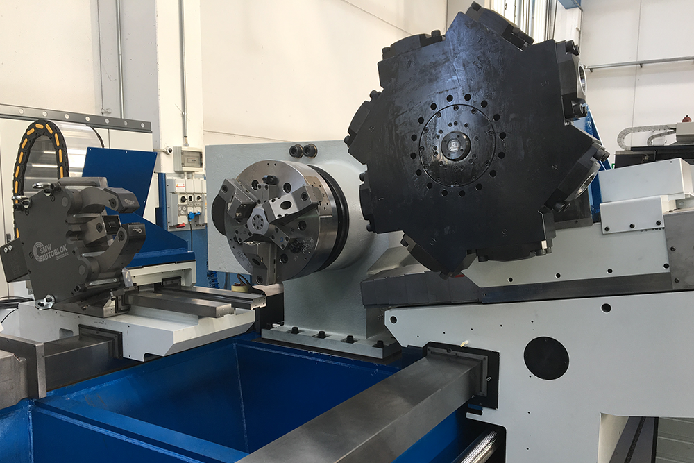 Die Konstruktion der Horizontaldrehmaschine umfasst eine linke und rechte Drehspindel mit hoher Leistung und hohem Drehmoment, einen Doppelsattel mit Revolverkopf, der mit Capto C10-Werkzeugen ausgestattet ist. Die SRE 500 ermöglicht eine hohe Zerspanungsleistung dank der schweren Gusskonstruktion der Maschine mit flacher Führung. Sie kann mit motorisierten Werkzeugen und C-Achse ausgestattet werden, um Bohr- und Gewindeschneidarbeiten mit einer einzigen Maschine durchführen zu können.