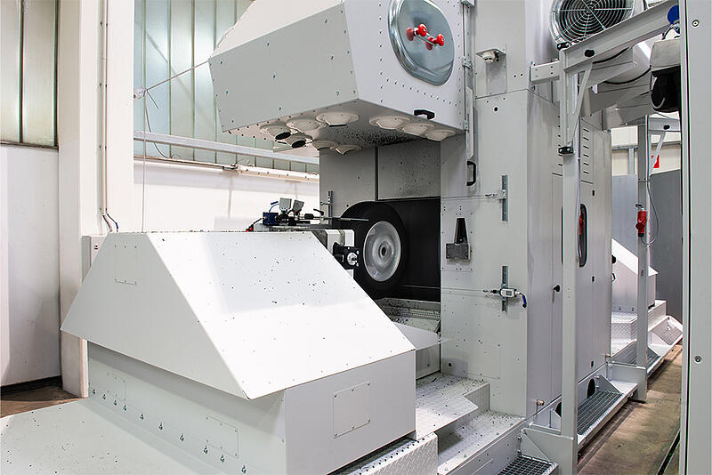 Many different protective devices are used and monitored during the test: travel distance, bulge and burst, inner rim flange, deflection depth of the tire, limit values of force and angle. Motion control systems record and control the loading forces. The AZN machine can optionally be supplied with two load stations, which doubles the testing capacity.
