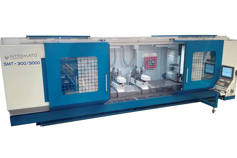 Горизонтальный токарный станок SMT 300 спроектирован и изготовлен для токарной обработки и сверления железнодорожных осей. Конструкция станка включает в себя два горизонтальных шпинделя, которые работают одновременно на обоих концах оси. Каждая рабочая головка может выполнять операции фрезерования, центрирования и сверления. Благодаря сенсорному датчику можно измерить положение необработанной оси, определить этап производства.