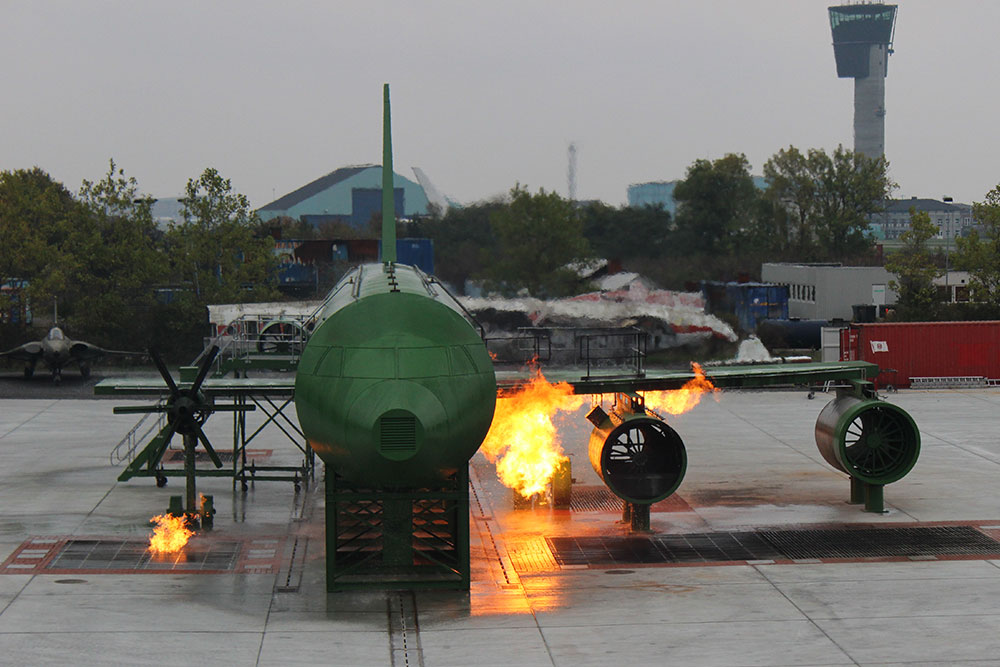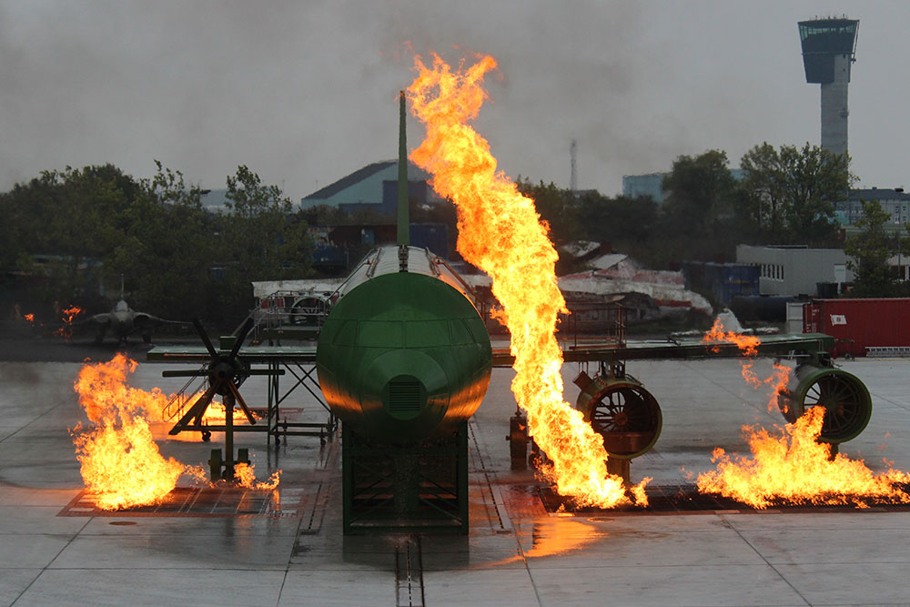Также есть дополнительные варианты, когда можно выбрать между внешним возгоранием из-за сжиженного нефтяного газа или углеводорода, а также из-за комбинированных видов топлива. Клиенты могут выбрать грузовые двери с гидравлическим приводом, бронированные панели, электрические тренажеры для обучения борьбы с пожарами, поврежденное шасси и крыло и множество других реалистичных опций. Кроме того, гибридные конструкции также являются распространенным вариантом, когда в одном тренажере объединены два или более типов самолетов. В качестве примера можно привести один тренажер с двумя различными типами крыльев, двигателями с разным расположением и разных размеров, с разным расположением сидений, различными типами дверей, несколькими диаметрами фюзеляжа и т.д. Также возможно добавить компоненты небольших пригородных самолетов, например, двигатель Q400 на одном из крыльев или двигатель 717 / MD-80 на хвосте. Кроме того, общая длина фюзеляжа и крыльев регулируется в зависимости от доступного пространства и бюджета. Все это объединяется современной компьютерной системой управления ПЛК, которая использует самые передовые полноцветные беспроводные устройства управления внутри самолета, а также сенсорные экраны или кнопочные операторские панели управления. При этом в тренажере одновременно используются самые современные мировые системы безопасности, в которых сочетается высокая реалистичность и нагрузка от тушения реальных пожаров при защите пожарных от травм.